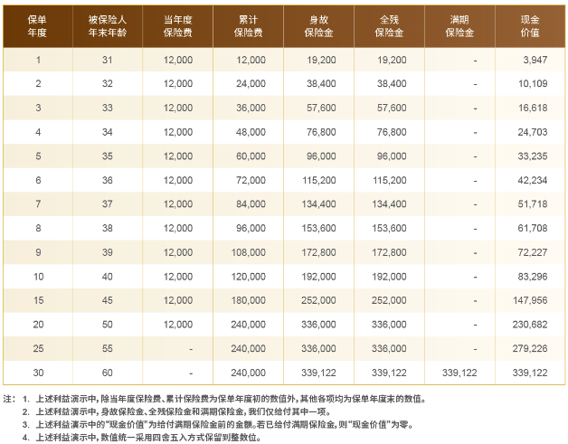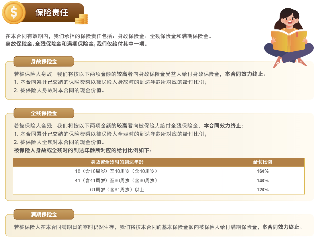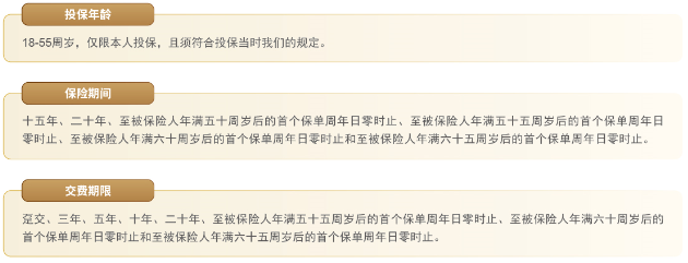 2. 本宣传资料仅供参考,完整的犹豫期、保险责任、责任免除、其他免除保险责任条款、如实告知的义务及不如实告知的后果、现金价值、特别约定等内容请参阅保险合同条款,并以该条款为准。