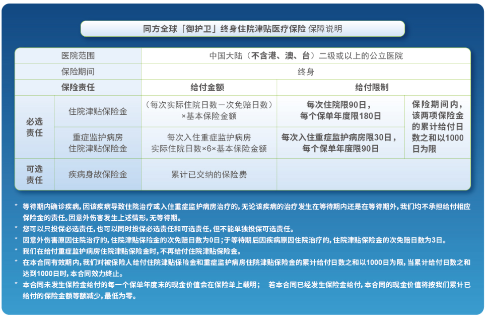 住院津贴给付持续终身,稳定解决客户住院照护需求